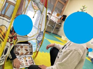 なんとも微笑ましい光景ですね!!それからおもちゃのお金を使ってお支払い!お釣りを渡す!!など徹底して遊んでる姿が素晴らしく感心しました👏遊びの中でも学んでいるのですね( *´艸`)