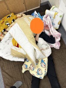低学年のお友達はアンパンマンハウスに毛布やタオルケットをかけて入り口をふさぎ、お友達と一緒におままごとを楽しんでいました☆彡
