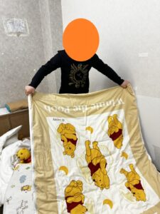 しっかり布団や毛布など払ってから伸ばし、角を合わせて綺麗に畳んで棚に戻してくれました👏