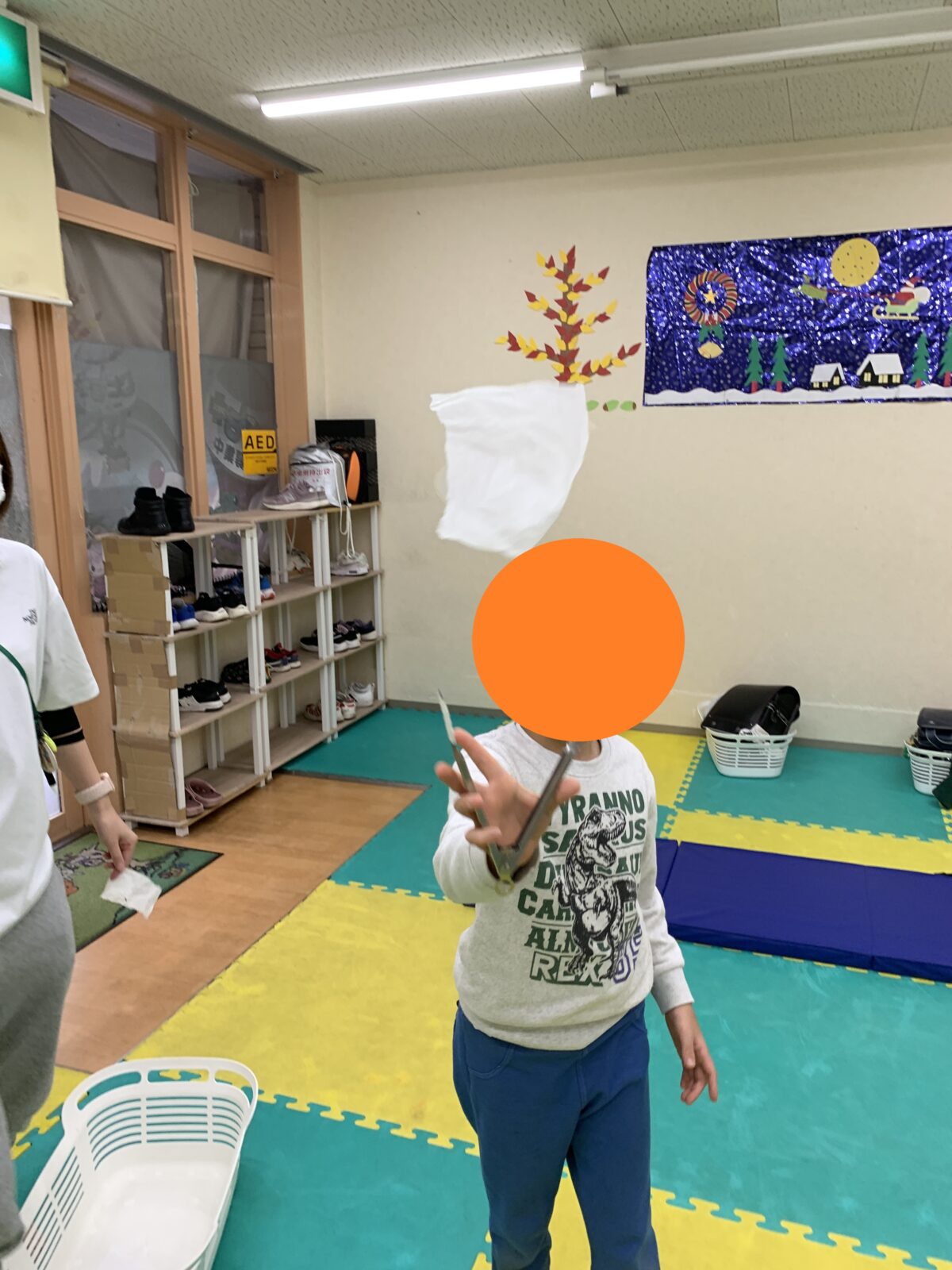 最初はティッシュの動きに翻弄されるお友達たちでしたが次第にやり方に慣れ、ティッシュを掴む確率が増えてきました(*’▽’)