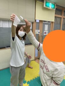 この時も腕を伸ばしてもらうなど動作を引き出しながら行いましたよ(*^^)v