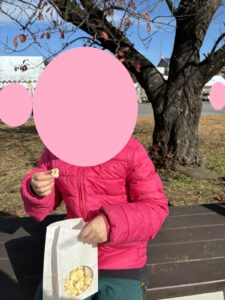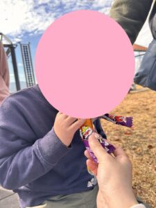 お菓子のつかみ取りも無料で行われいました(*^^*)椅子に座ってすぐにほおばっていましたよ‼