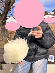 コチラのお友達は顔と同じくらい大きい綿あめをもらえて大満足(⌒∇⌒)♪