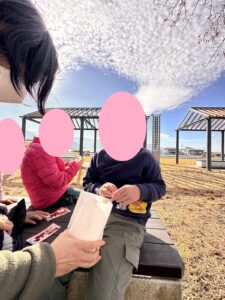 お菓子のつかみ取りも無料で行われいました(*^^*)椅子に座ってすぐにほおばっていましたよ‼