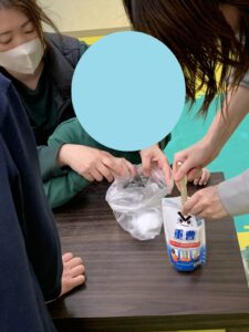 材料をよーく混ぜていくとだんだん冷たさを感じるようになります!