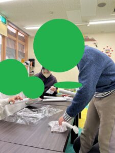 まずはチョコを溶かすためにみんなでチョコを細かく砕きます🍫