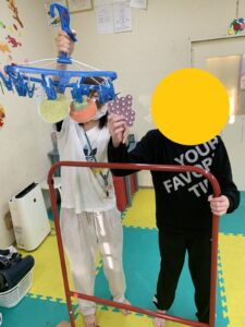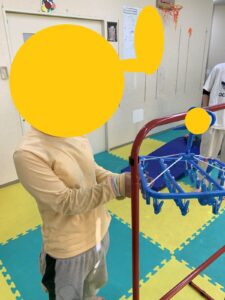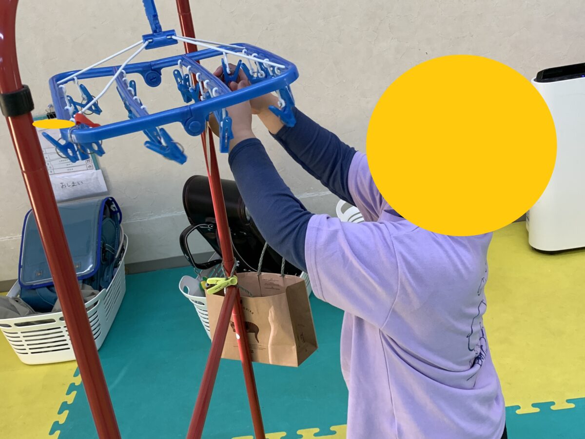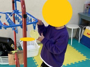 ですが、実はとっても上手に出来るお友達もたくさんいるので、お家での靴下干しなどのお手伝いに活かせないかなと考えています\(^o^)/