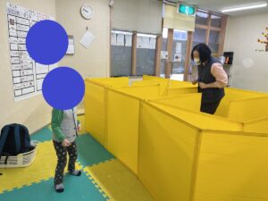 フロア内にパーテーションで迷路を作ってみんなで遊びましたよ✨