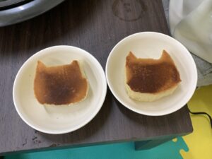 午後は明日の猫の日にちなんで、ネコ型のホットケーキを作って食べましたよ!