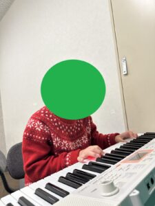 でも、やっぱり気になっていたようで椅子が空くと順番に正面に座り触ってみたり、光る鍵盤をジーっと眺めたりしていました(*‘ω‘ *)