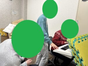 宿題が終わった一人のお友達が「ピアノをしたい」と教えてくれ、個室オープンしたところ今日もたくさんのお友達が音楽を聴き集まってきました( *´艸`)
