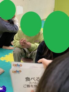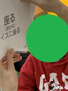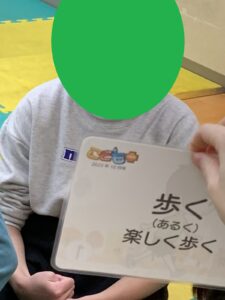 絵を見て「何をしているのか」を聞きました!最近力を入れている言葉のお勉強も兼ねて、今日は「誰が」なども答えてもらいました!!難しく考えてしまい言葉に詰まってしまう場面もあり、これからお勉強の機会を増やして理解を深めていきたいと思います☆彡