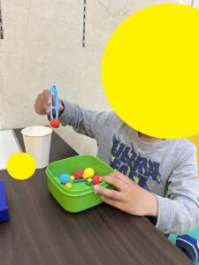 お箸の持ち方が上手になるようにピンセットで持ち方の練習を頑張るお友達も(●´ω`●)