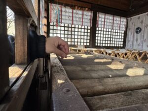 1人1人持ってきたお財布からお賽銭を出し、賽銭箱に入れていきます!