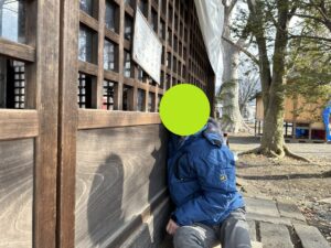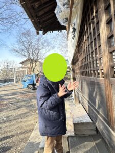 一方神社が気になるお友達は格子の隙間から拝殿内を覗いてみたり、お参りの作法の手順をジーっと見つめたりとそれぞれの楽しみを見つけながら外出を楽しみました♪