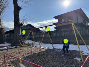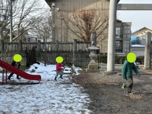 お参りの時から後方にある遊具で遊びたいお友達がソワソワしていましたが、みんながお参りを終わるまでしっかりと待つことが出来、スタッフの合図と共に元気に遊びだします♪