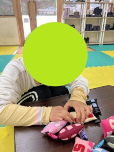 土曜日の今日はたくさんのお友達が来てくれ、それぞれ手先の療育としての課題に取り掛かってもらいました!