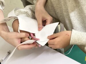 切る時はハサミではなく紙の方を動かしながら切ることを教えてもらいながら一緒に練習しました☆彡