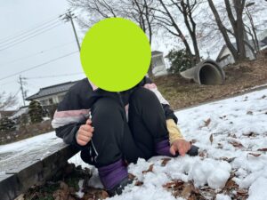 まだ少し雪が残っている岩船公園に行き、遊具で遊んだり、雪合戦をしたりと久しぶりの外遊びを楽しむことが出来ました💮