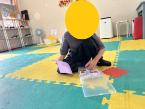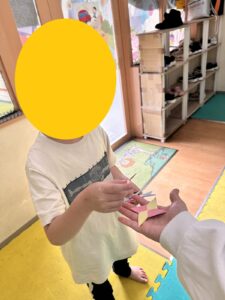 スタッフと折り紙で作った手裏剣で遊びます☆彡