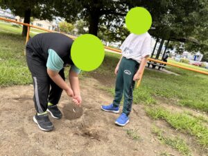 こちらでは誰かが掘っていた穴から伸びていた根っこが気になるお友達🌳