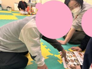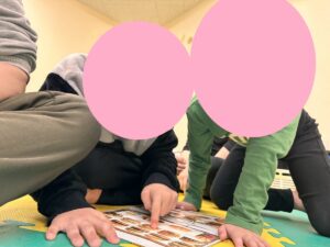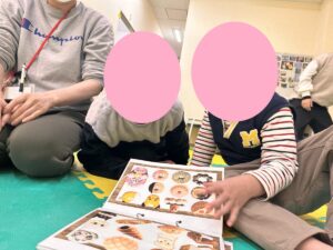 甘い物から主食まで様々な食べ物が載っていることもあり、お友達はジーっと見つめています👀
