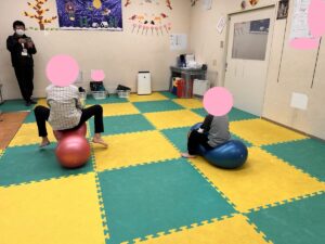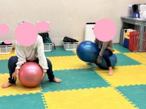 日々の遊びの中でもバランスボールに乗ったりバランスボールで走ったりするお友達が多いこともあり、バランスボールの扱いはみんな上手になってきています♪