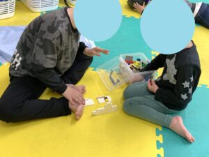 「一緒に遊ぼう!」と遊びに誘いレゴで仲良く遊んだり…