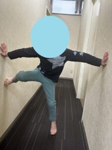 手足が壁に届くのがやっとな事もあり「できないよ~」となっていましたが、お兄さんへの憧れのまなざしはそのまま、大きくなったら出来るようになるのお話で上手に切り替えることが出来ています(´ω`*)
