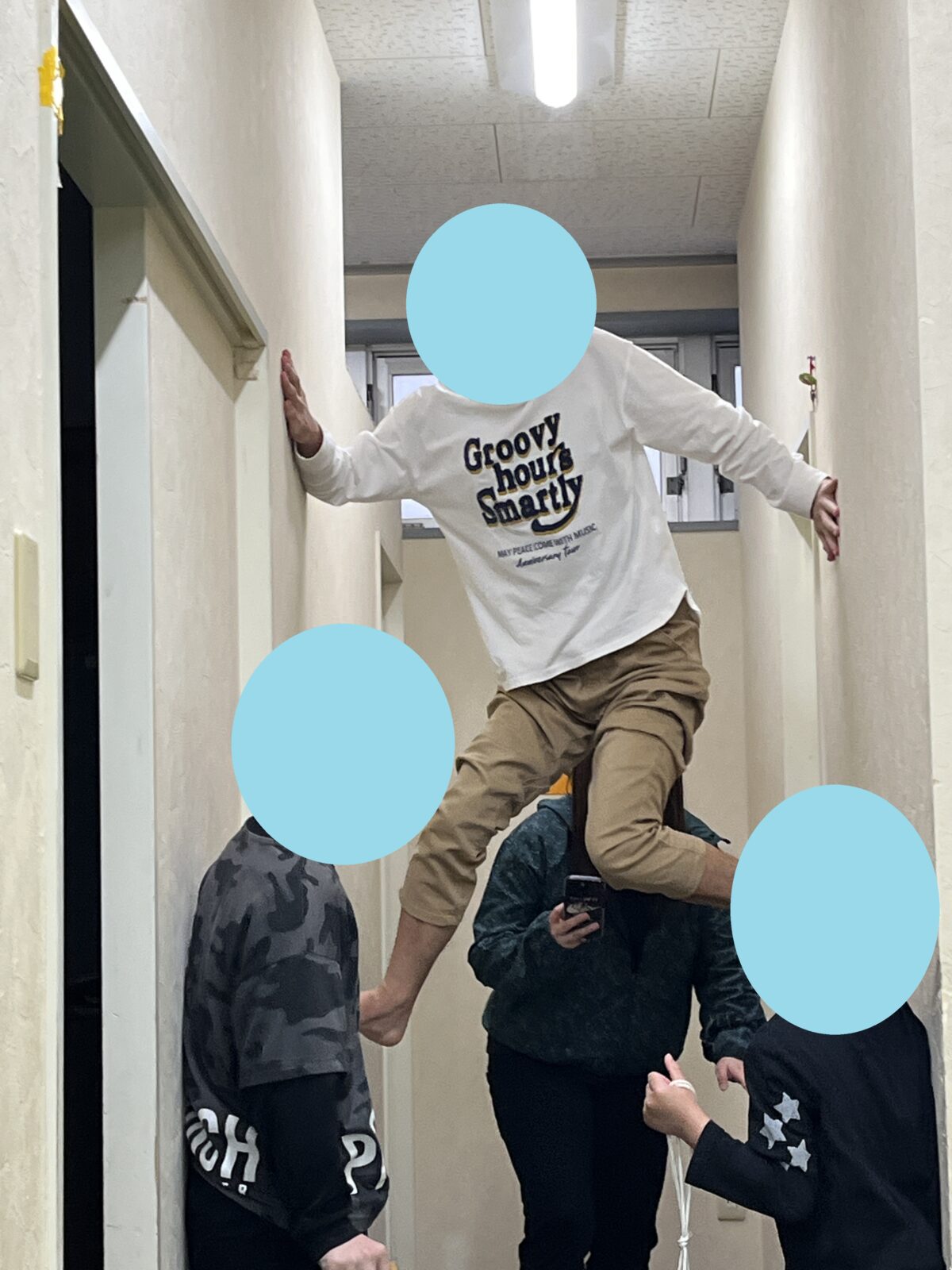 トイレまでの廊下の壁を使って壁のぼりを楽しむお友達がヾ(≧▽≦)ノ