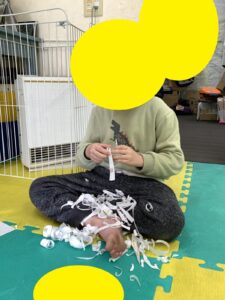 宿題のないお友達は自分の中のルーティンをこなします!こちらのお友達は紙やぶりがルーティンの一つです(^^♪