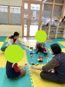 スタッフがお客さんになって〇〇弁当くださいと注文したり、お友達同士で店員さんとお客さんをやったりと役割を変えながら遊びましたよ(^^♪
