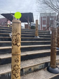 駅前の階段にはこんな感じの灯篭がいくつも並んでいました\(^o^)/