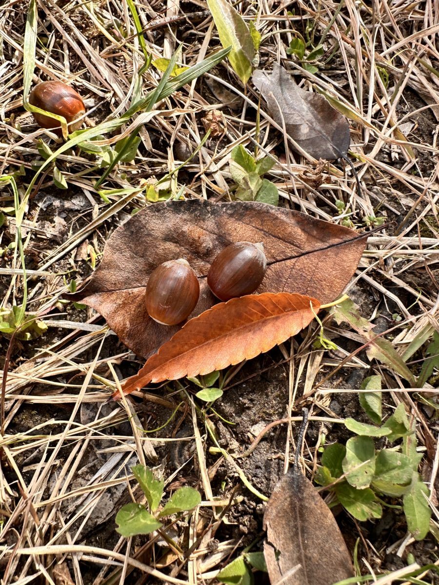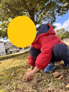 午前中は児童発達のお友達とお散歩へ行き、さっそく絵本に出てきたどんぐりや落ち葉を見つけたお友達!
