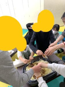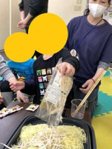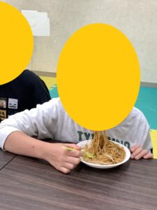 今日は男の子たちばかりで人数も多かったため、いつもより量も多めで焼きそば作りを行いました!