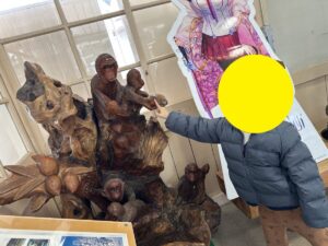 山ノ内町の歴史を見たり、木で彫られたモニュメントを触ってみたりとそれぞれ散策を楽しみながら外出が出来ました(*^^)v
