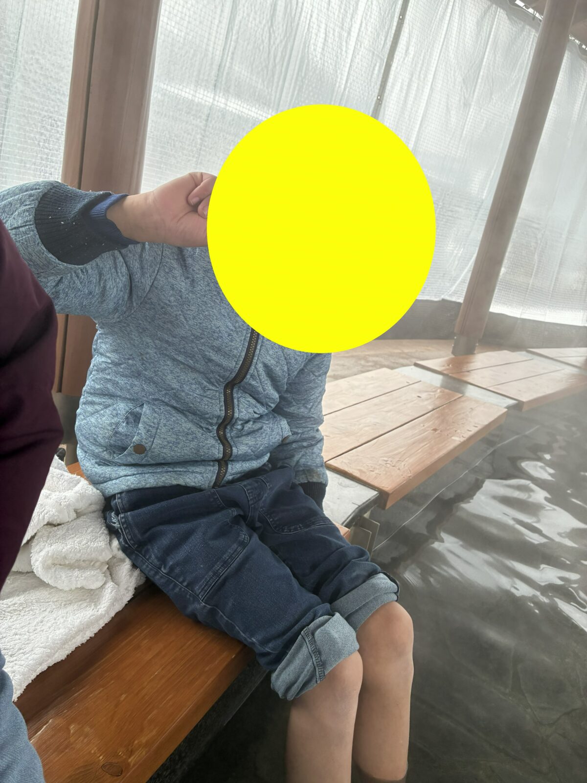 児童発達や低学年のお友達は少し足湯に入ってから周辺散策をしました(∩´∀`)∩
