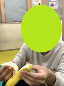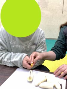 「切りやすい!」とバナナの柔らかさに普段調理実習で固いお野菜を切ってくれているお友達はビックリしていましたよ(笑)