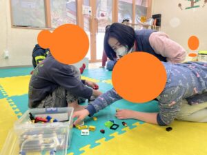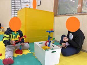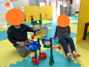 同じ学年で、同じ空間で過ごす時間を過ごしているうちに打ち解けて仲良くなってきた様子の二人!!一緒に遊ぼうと声をかけ合って上手に遊んでいます(*´ω`*)