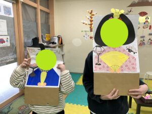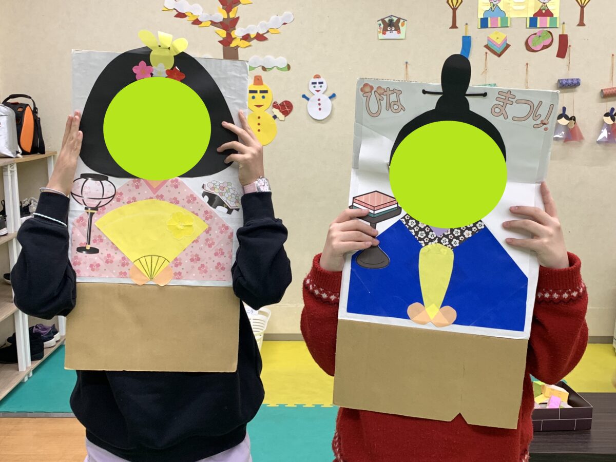 「昨日はお内裏様だったから今日はお雛様で~」とお友達と話し合って持つ方を決めていました(*^^*)