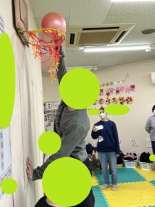 ボールで遊ぶ姿がありました✨フロアに設置してるバスケットのゴールにダンクシュート出来てしまうなんて、なんてカッコイイのでしょうか(´艸`*)