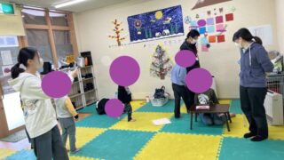 昨日からの雪は少しだけ積もりましたね⛄近くの山は真っ白でスキー場も本格的に始まってきましたね(^^♪足元も悪く、寒い日となったので今日は室内で全員あそびを行いました!まずは「宝探しゲーム✨」小さいお友達に大人気の遊びです(*^▽^*)お友達...