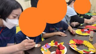 おやつ作り 秋を作って🍄 今日は朝からよく晴れ、気持ちのいい1日となりました!時折吹く風は少し冷たく、夏とは違う風を感じますね(^^♪今日の午前中は、みんなで秋のリース作りを行いました🍁紙皿を土台にした部分に赤と黄色の花紙を丸めてくっつけます!固く丸めてしまうと隙間... 2025.09.27 おやつ作り信州中野教室個別療育療育センター秋の味覚自立課題運動遊び